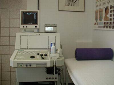 umgewandelt werden und an einen Rechner weitergegeben werden. Dieser Rechner produziert ein virtuelles Bild, das der geübte Untersucher interpretieren kann. |