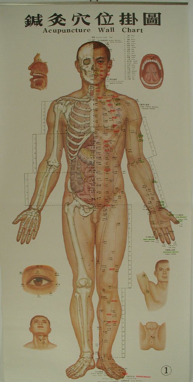 Die "Inneren Organe" werden in Speicher- und Hohlorgane unterteilt (Zang/Fu-Organe). Blut, Qi, Körperflüssigkeiten und die "Essenz" sind aus Sicht der TCM wichtige körperliche Substanzen. Eine weitere wichtige Begrifflichkeit sind die "Meridiane" (Leitbahnen, auf denen Akupunkturpunkte liegen).